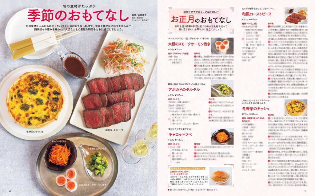 巻頭特集1では、料理家の石原洋子さんの春夏秋冬のおもてなし料理をご紹介します。