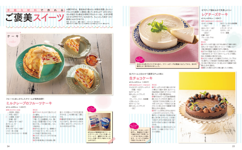 ほりえさちこさんの紹介する身近な材料で作るスイーツは大きな手間がかからず作りやすいものばかり。ちょっとした自分へのご褒美などにも。