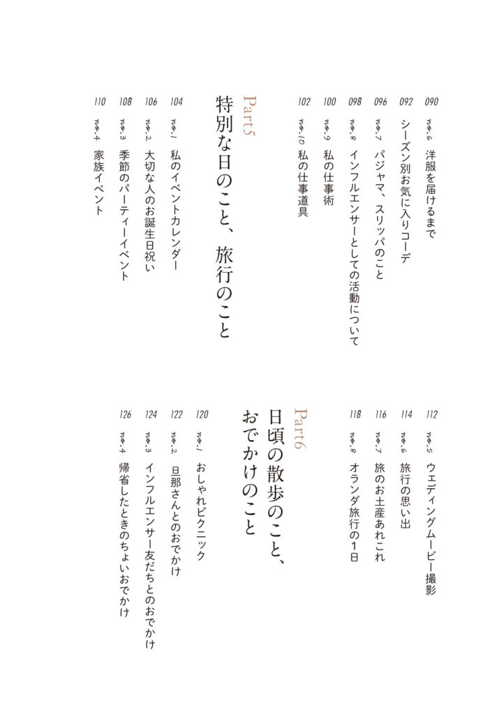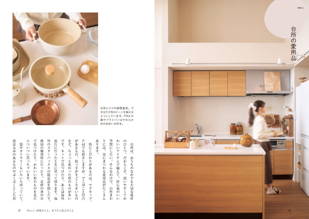 日々の過ごし方や家でのひとり時間、料理やお菓子作り、インテリアへのこだわり、仕事との向き合い方など、等身大のライフスタイルを紹介しています。さらに、別居婚という夫婦のかたちや家族との程よい距離感にも触れ、自分らしさを大切にする暮らしを提案します。