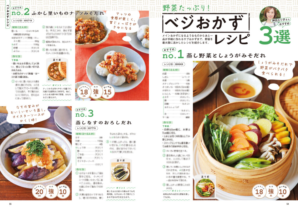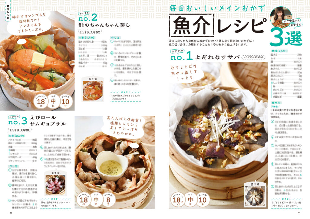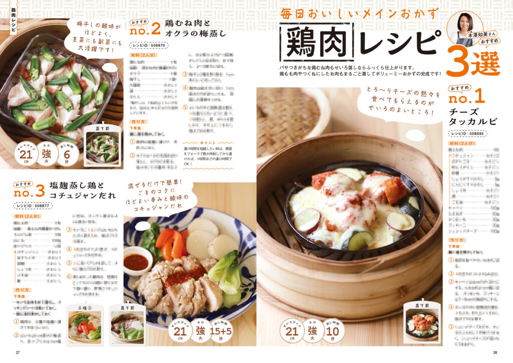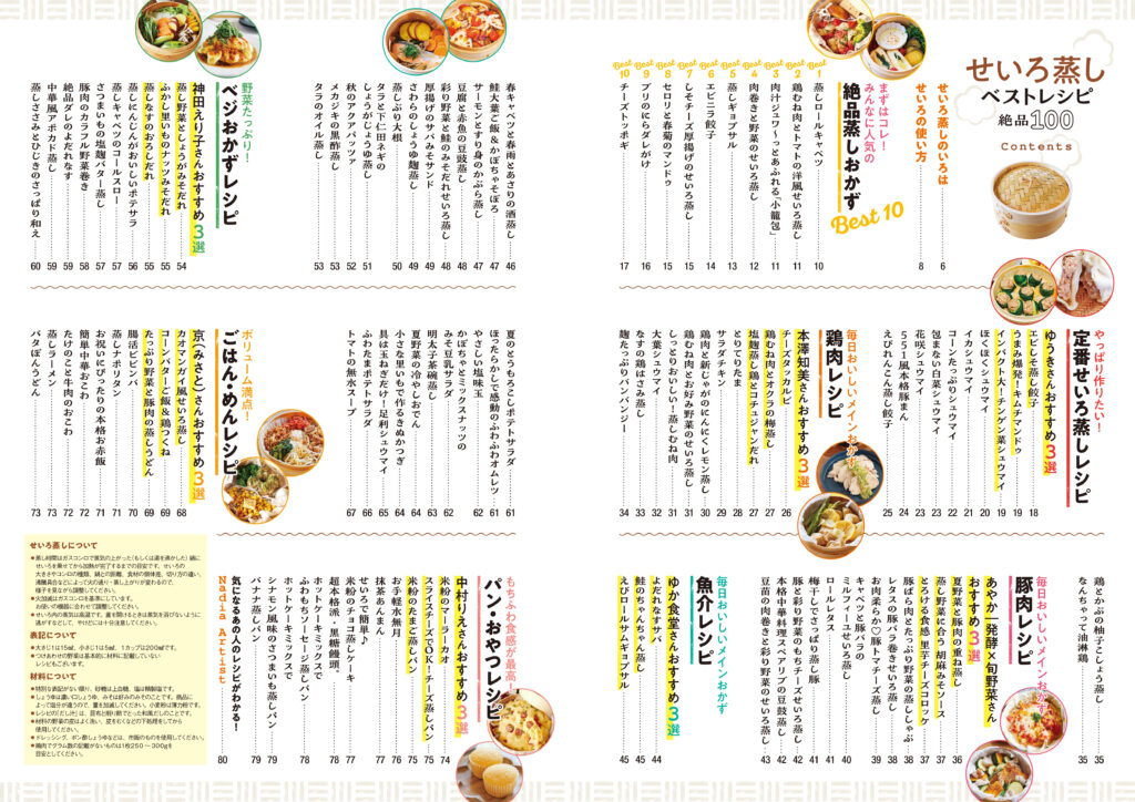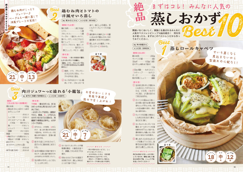 「せいろで蒸し料理と言ったらこれ!」という餃子やシュウマイなどの定番蒸しレシピも紹介。基本のレシピからアレンジレシピまで収録。