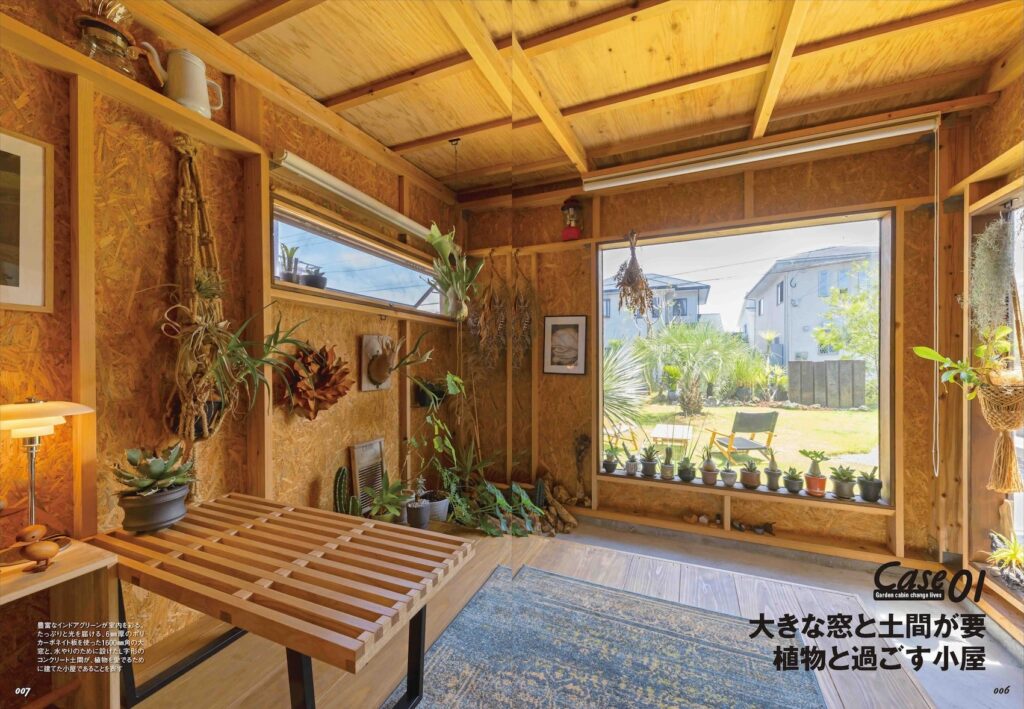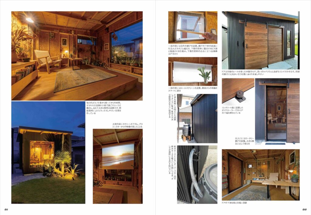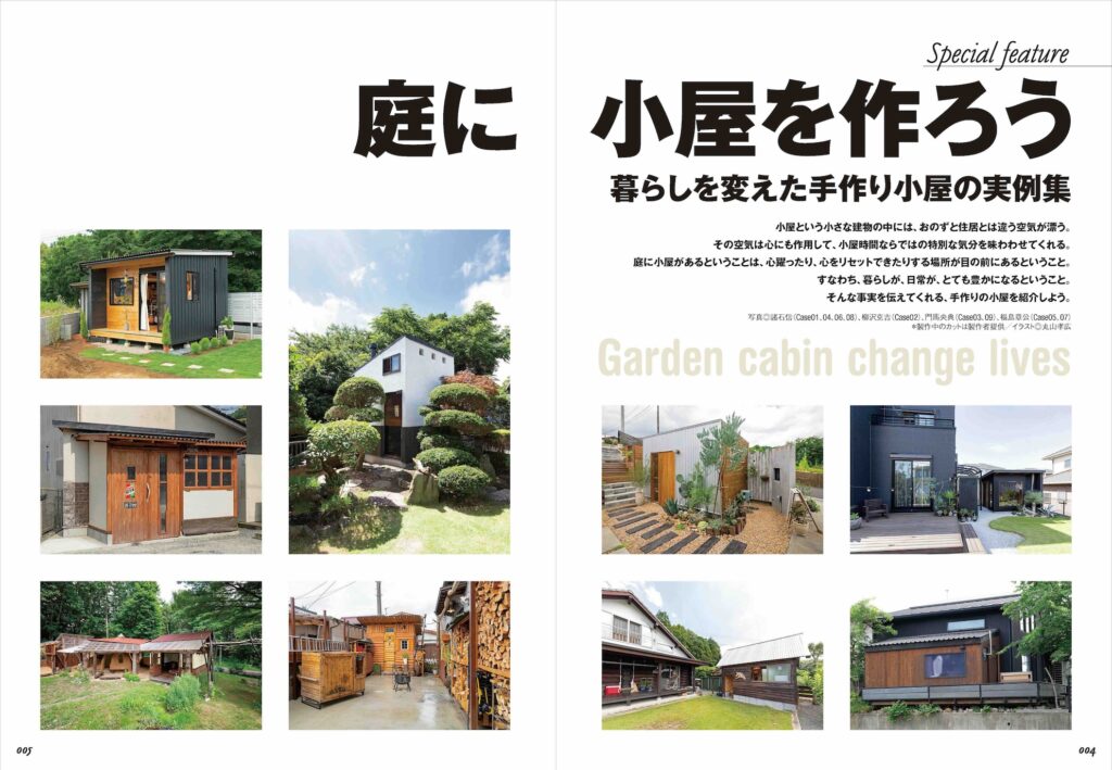 巻頭記事は「庭に小屋を作ろう 暮らしを変えた手作り小屋の実例集」と題し、家主が自ら庭に作った9棟の小屋を紹介しています。