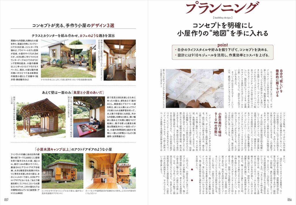 巻頭の実例集に続くのは、小屋作りの全プロセスについて解説する「超実践的! 小屋作りガイド」です。