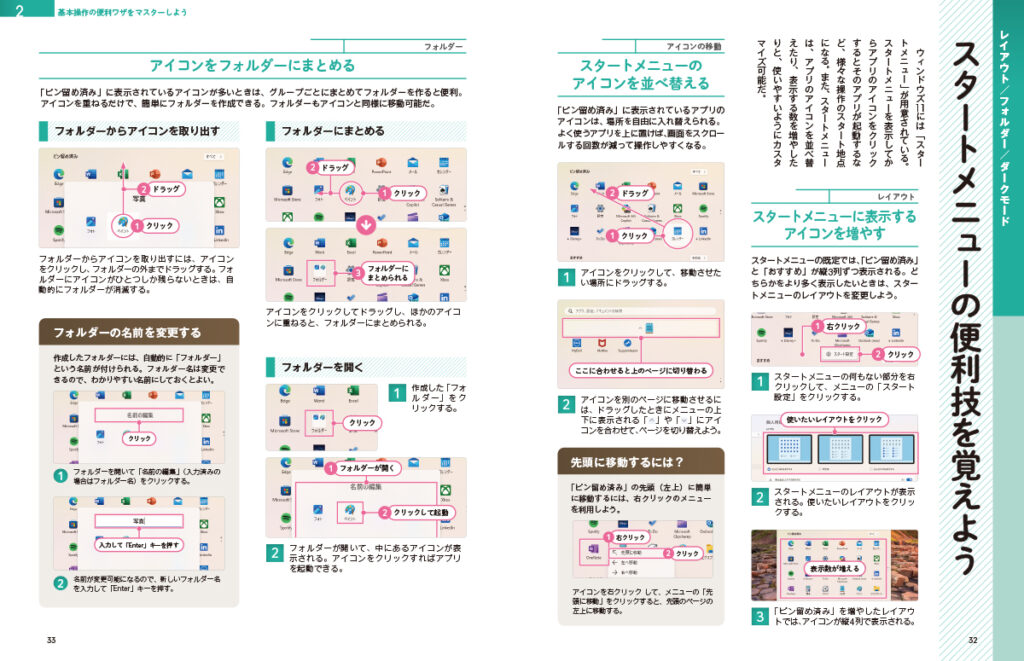ウィンドウズ11の導入から初期設定、基本的な操作方法までを順を追って解説。ウィンドウズ11では、スタートメニューの構成やウィンドウの表示方式などが大きく進化しており、それらのポイントを詳細に紹介しています。