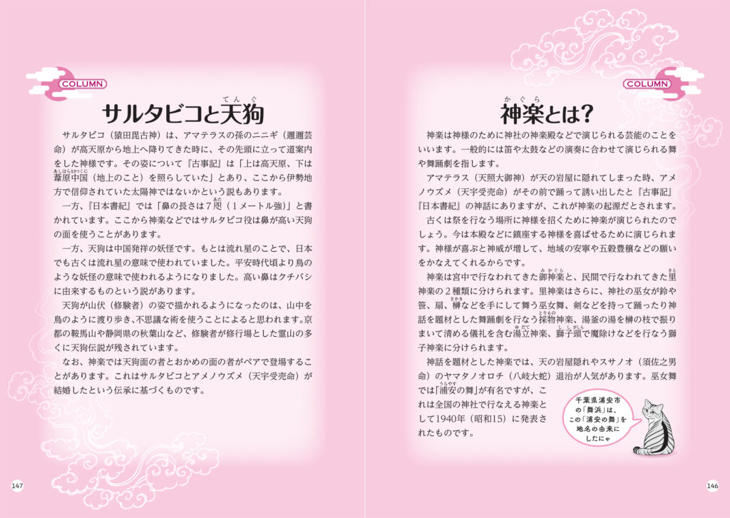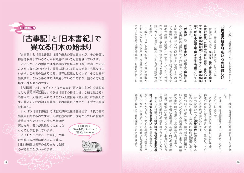 神道と仏教についての素朴な疑問に答えるコラムも多数掲載。神社やお寺のお祭と縁日、御朱印、じつは信仰に由来する言葉など、生活の中の神道と仏教を知ることで、通勤や通学で目にする日常風景がより楽しく興味深いものになります。