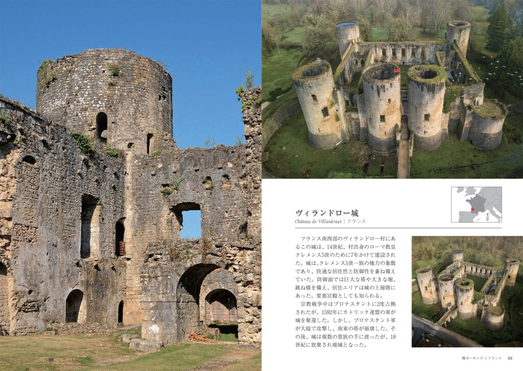 本書では、ヨーロッパを中心に、中東、中南米、アフリカ、アジアなど、世界中から厳選した廃城と廃宮殿を、簡潔な解説つきで紹介しています。