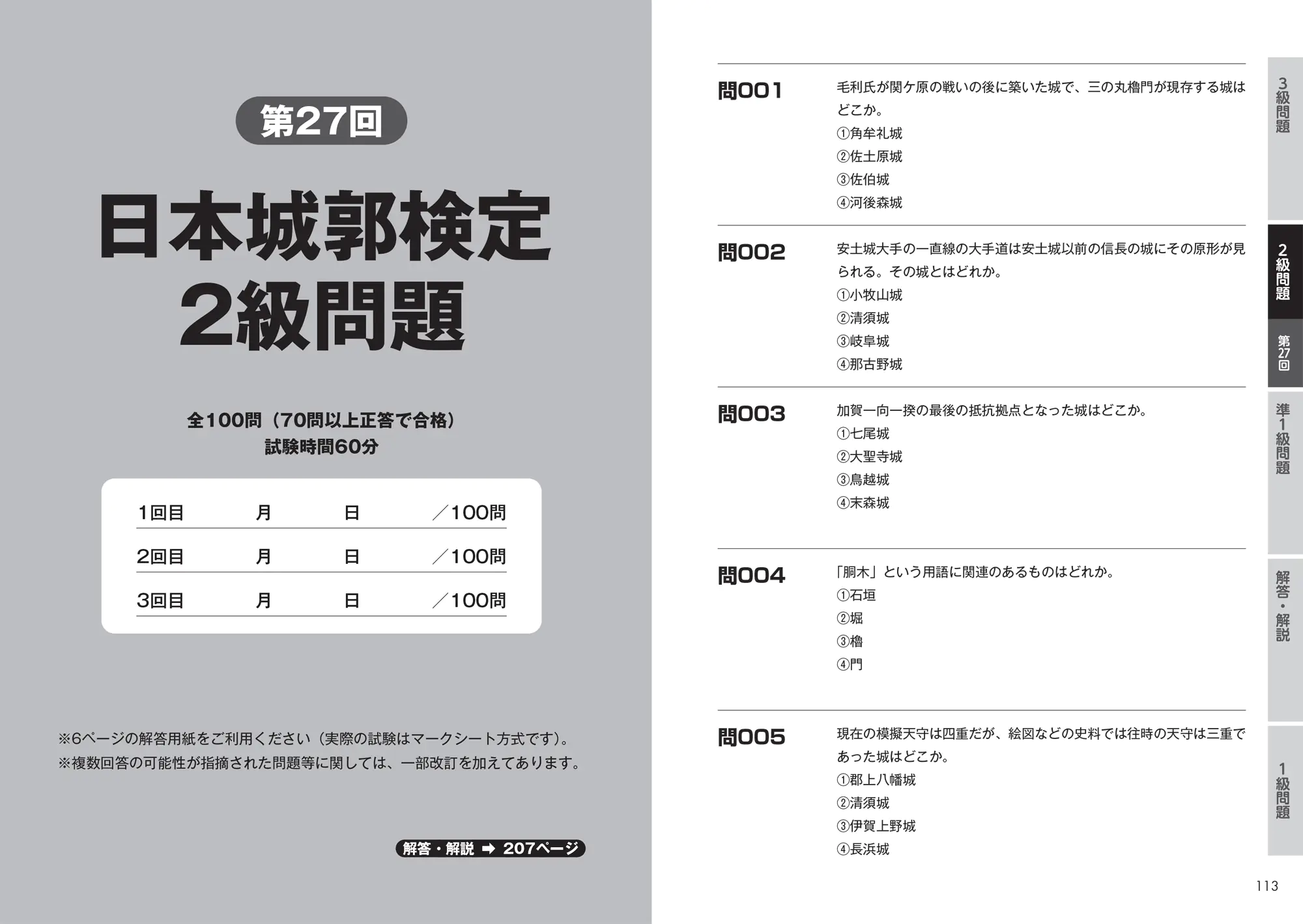 公式日本城郭検定過去問題集 第25・26・27回収録 ―準1級・2級・3級編―