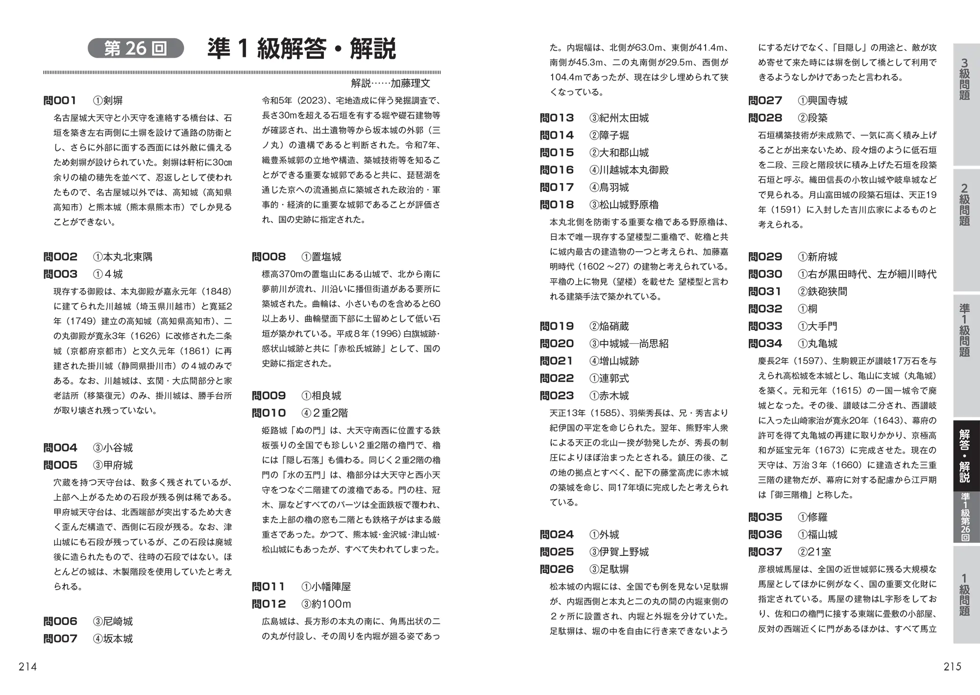 上位級難問には、日本城郭協会常務理事の加藤理文先生による解説がついています。