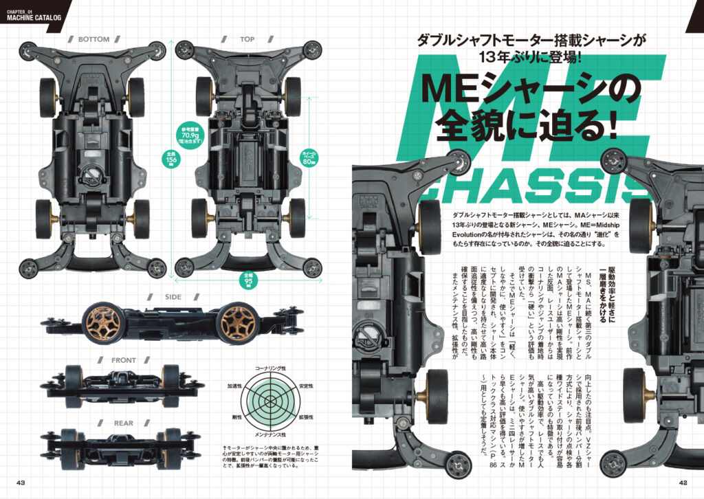 13年ぶりに登場したダブルシャフトモーター搭載シャーシ、MEシャーシを詳細に解説。適度なしなりを持ちつつ、剛性も保つ構造に施された工夫をタミヤ担当者に直撃! 開発の意図やシャーシの特徴など全貌に迫ります。