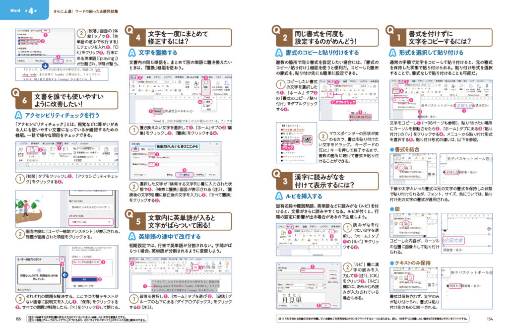 エクセル編、ワード編のそれぞれで、困ったときの対処法がわかるQ&Aを収録しています。