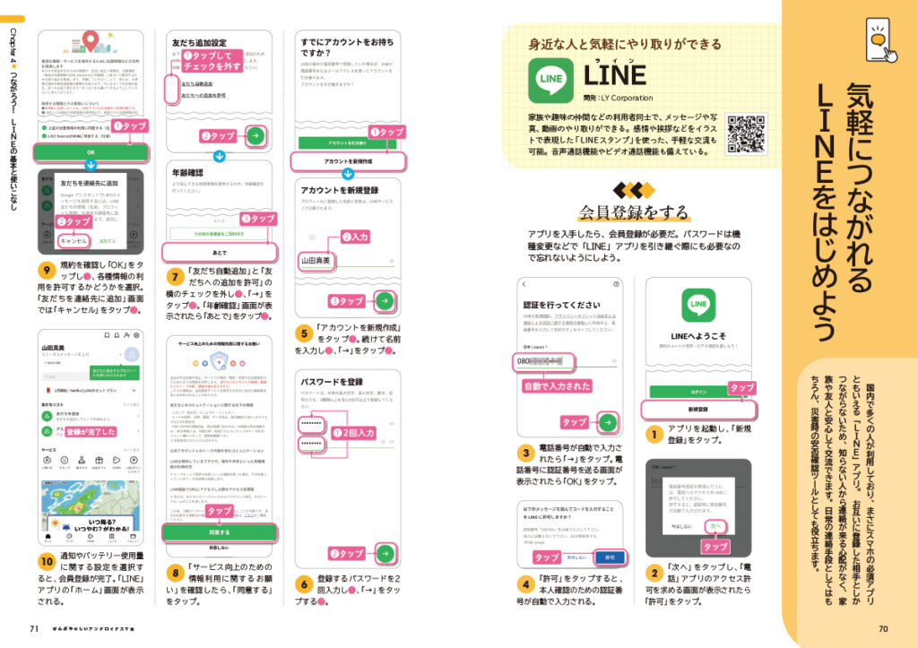 家族や友人と気軽にメッセージのやり取りが行えるうえ電話代わりの音声通話やビデオ通話まで行えるLINE、QRコードを介して現金を用いずにスマホで買い物ができる決済サービスのPayPay、専属秘書や相談相手のように自然な文章で調べものや文章作成をお願いできるChatGPTやGeminiなどの生成AIサービスといった、近年注目度の高いアプリの使い方もくわしく紹介。
