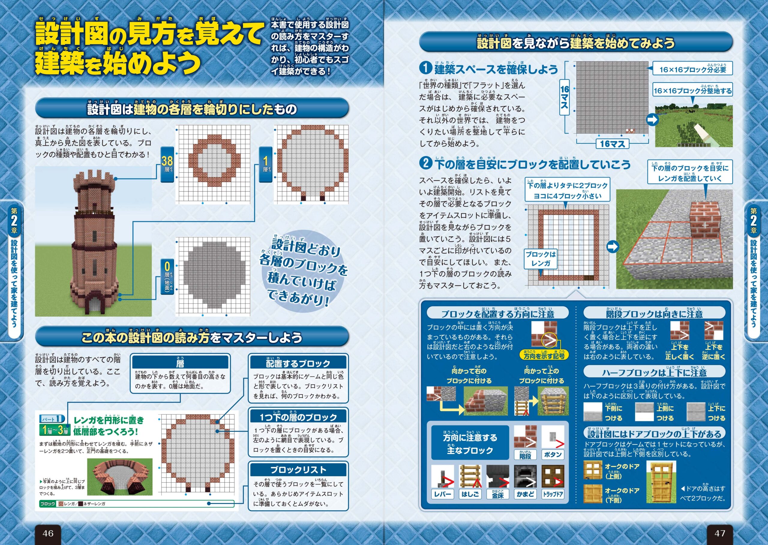 掲載している設計図は、レンガづくりの家やマンション、風車や牧場、塔、噴水、教会、寺院、城などバラエティ豊か。巻末では、これらを組み合わせた街づくりの方法なども紹介しています。