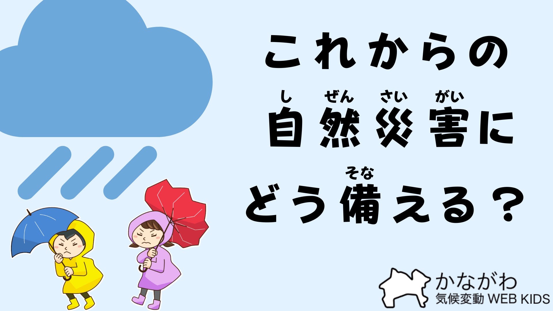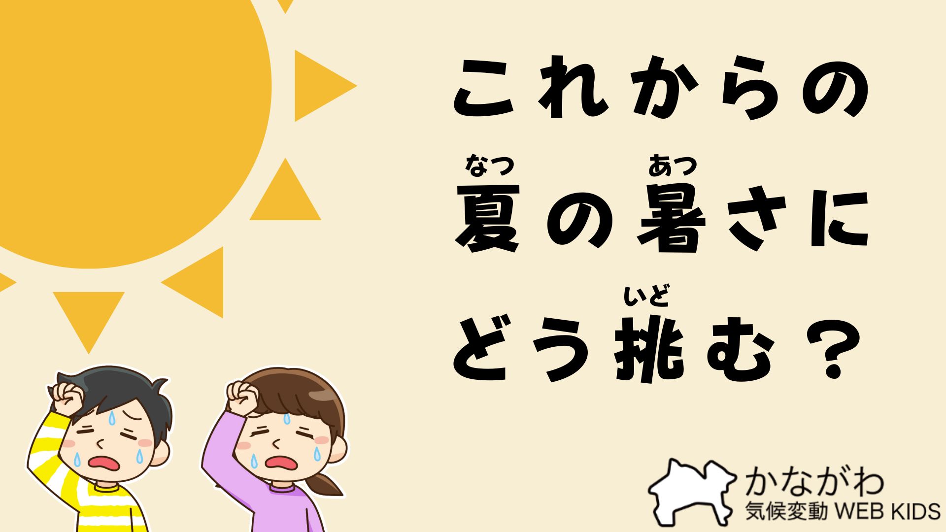 かながわ気候変動WEB KIDSでは、「これからの夏の暑さにどう挑む?」「これからの自然災害にどう備える?」という2つの動画を掲載。どちらも子どもたちに身近な出来事を導入に、気候変動による影響や、それに対する神奈川県の対策事例などをわかりやすく解説しています。