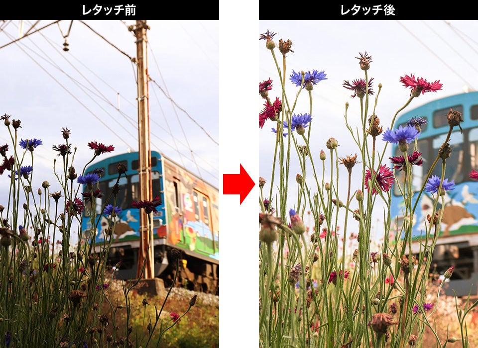 中井さん「とてもいい写真なのですが、真ん中の鉄柱と露出が惜しいですね。今回はトリミングして花の色が出るように少しレタッチしてみます。機会があればぜひ撮り直して」(撮影 : 田代音偉さん)