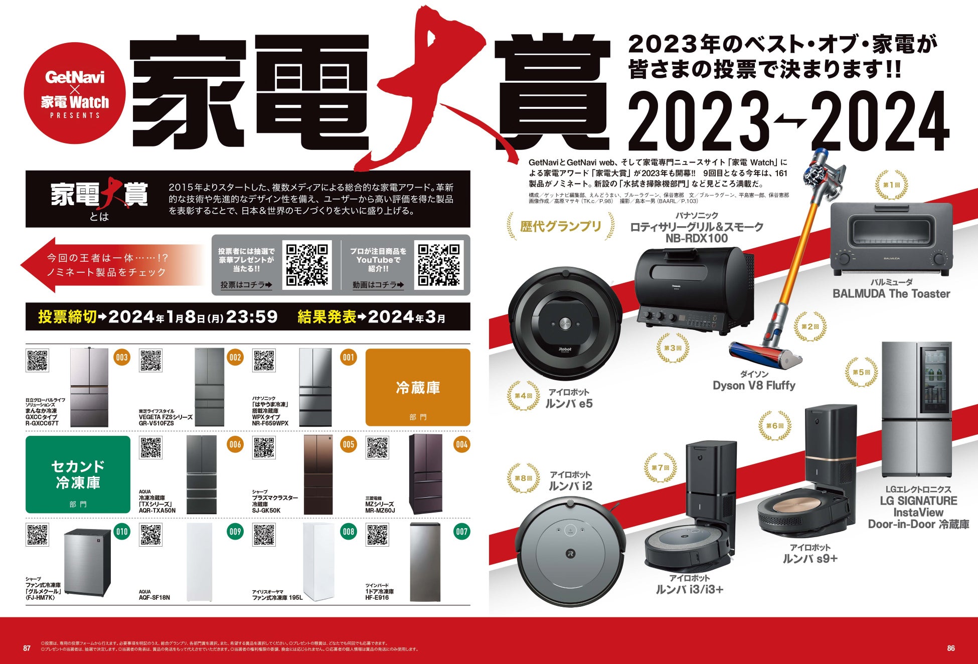 中間発表を2023年12月中旬に、結果発表を2024年3月に行います。 なお、ノミネート製品は、11月24日発売の「ゲットナビ 1月号」にも掲載されます。