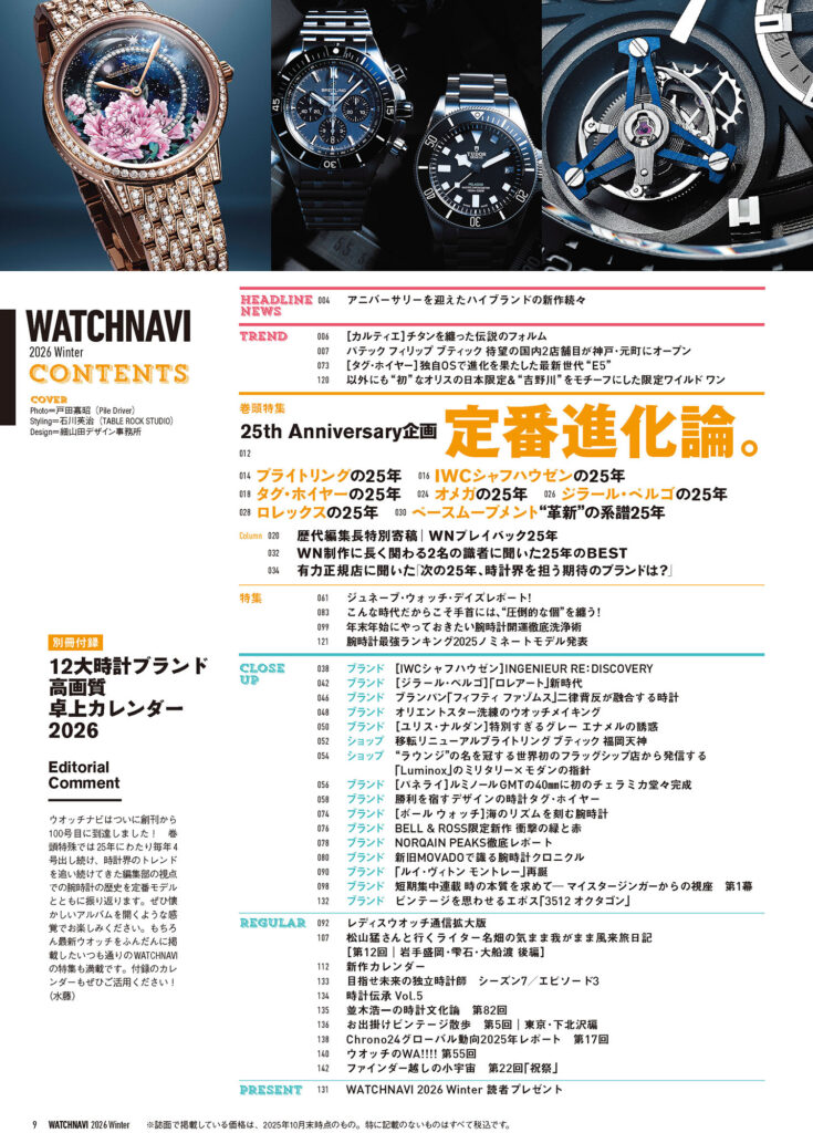 別冊付録は「時計カレンダー2026」/連載記事も大充実!