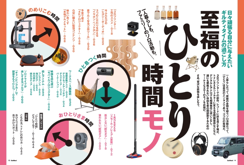 ■ ひと息つく時間…ワークスペース構築術/映像を持ち運ぶ「モバイルプロジェクター」/癒しアイテム/ソロドライブが楽しすぎる「クルマ」ほか