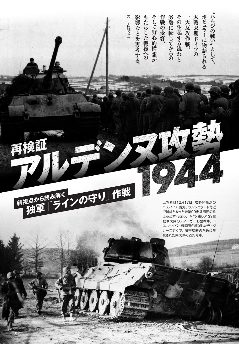 第一特集の「再検証 アルデンヌ攻勢1944」では、“バルジの戦い”として有名な、ドイツ軍が西部戦線で実施した乾坤一擲の大攻勢の実像にせまります。そもそも何を目的とした作戦だったのか。その作戦目的は作戦の失敗が見えた段階でどう変わったか? 作戦が戦後に与えた意外な影響とは? これらの意外に知られていない点にも注目しつつ、バルジの戦いの実像に迫ります。