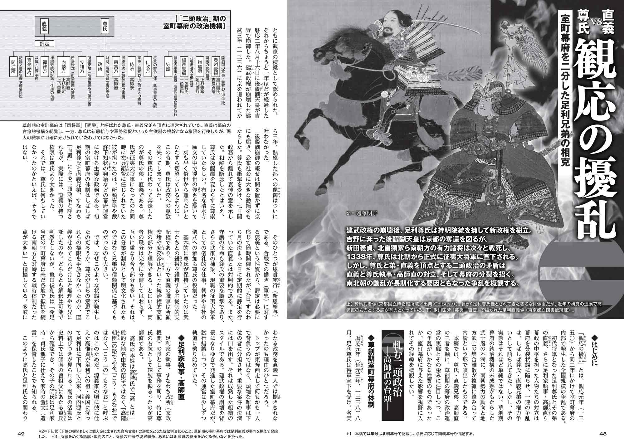 第二特集は、立ち上がったばかりの室町幕府を二分した足利兄弟(兄・尊氏、弟・直義)の戦いの背景と内実を描く「観応の擾乱」。なぜ幕府をスタートさせた兄弟は直後に対立へと至ったのか? 両者の戦いはどのように進展し、なぜ一時優勢となった直義に尊氏が勝利しえたのかを描きます。