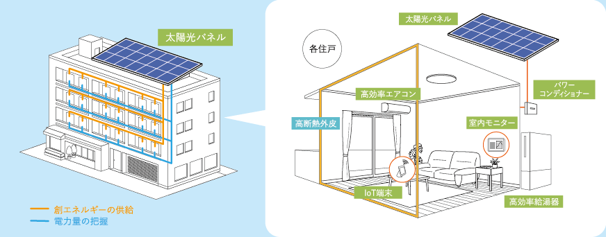 親松「“ZEHマンション ”をご存知でしょうか? ZEHとは、ネット・ゼロ・エネルギー・ハウスの略で、断熱性能が高い設備を備えた省エネ構造により、太陽光発電などでエネルギーを生み出す創エネを満たしているマンションを指します。自らのマンションでエネルギーを生み出すので、家計にもやさしいですし、地球に優しい再生可能エネルギーで暮らすことができる。結果的に、ユーザーの満足度UPにもつながるわけです」