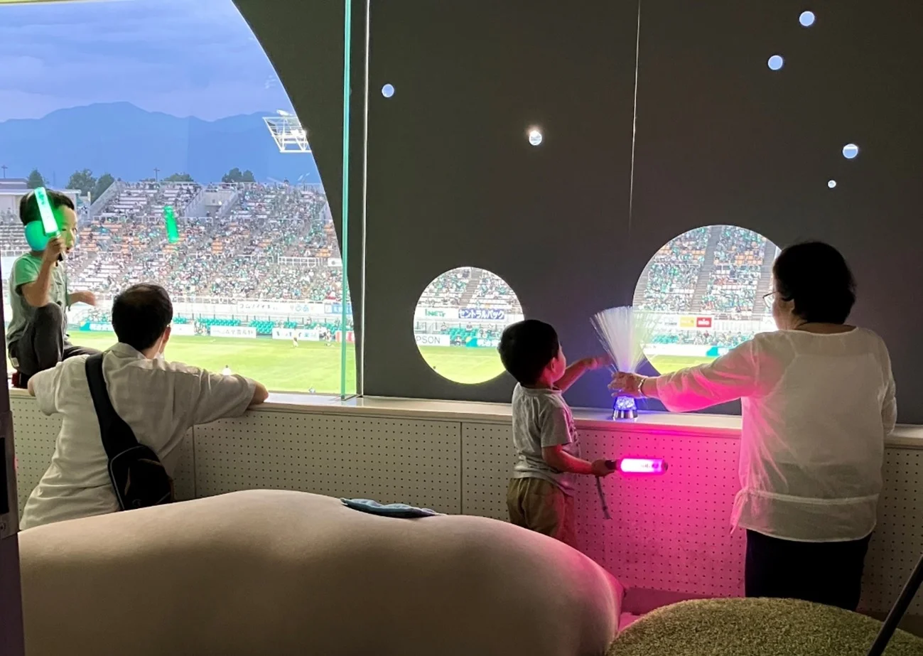 ↑2023年7・8月、試験的に設置したJリーグ松本山雅FC「センサリールーム」。