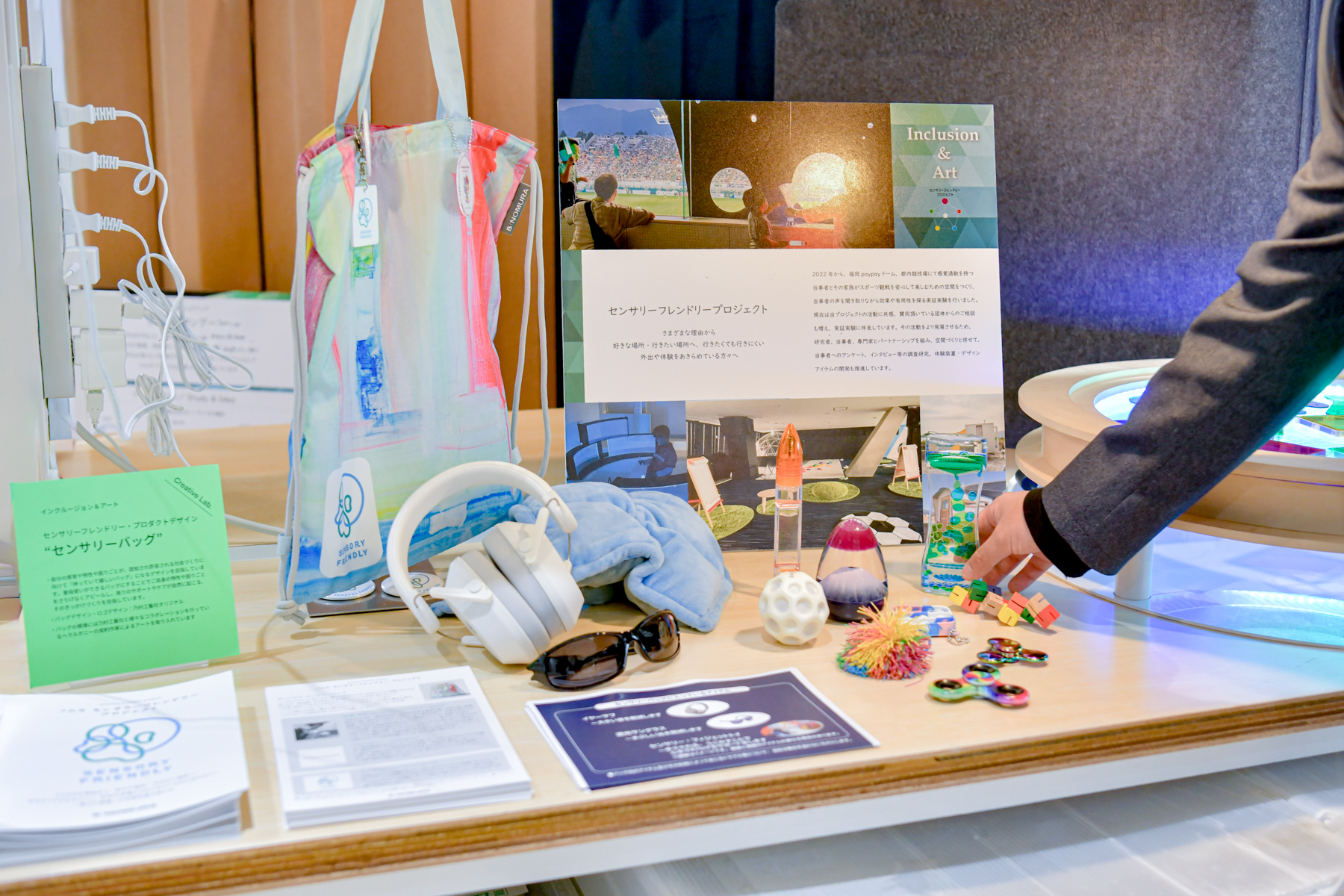 堀池「他には、『センサリーバッグ』も開発しています。大きな音を軽減するイヤーマフや、触ったり見たりして心を落ち着かせるセンサリートイ(オイルタイマー、ハンドスピナーなど)を詰めたバッグのことで、イベント会場などで配布したり、貸し出したりしています。これらのセンサリー・フィジェットトイは、共同研究している有識者の方からアドバイスを頂きながら選びました。苦手な感覚から遠ざけるとともに、『好き』を見つけるきっかけにもしてもらえたらと思っています。センサリールームの設置が難しい環境でも、お出かけや外出の一助となれるツールです」