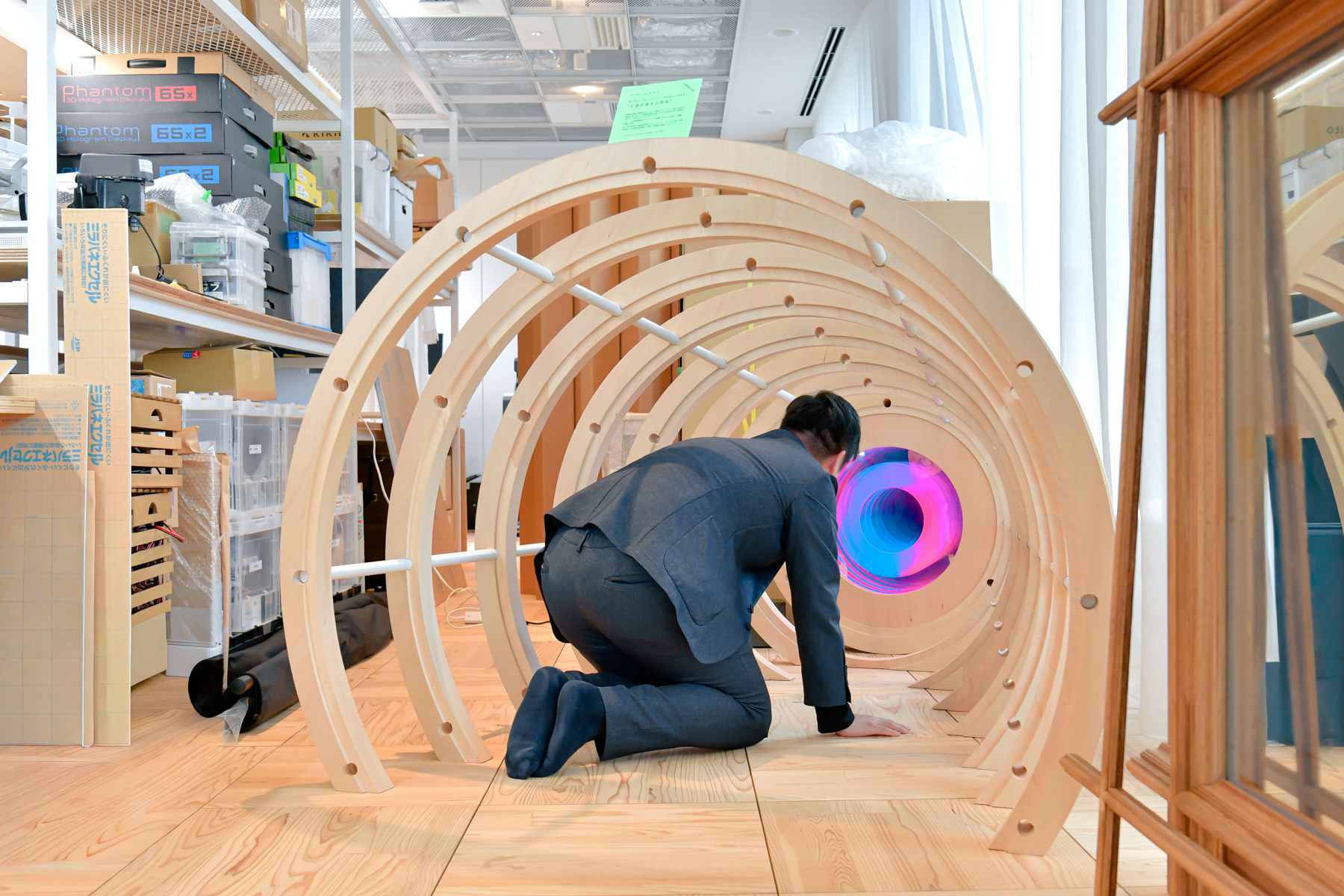 松本「トンネルは進むにしたがって狭くなっていき、最奥には光が動き、無限反射する光の装置があります。トンネル内に入り、光を目で追っていると気持ちが落ち着く、というアイテムです」